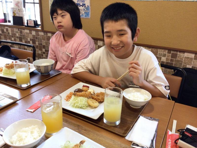 ワ・ラッセの後は、昼食場所の「大福丸」に移動して、昼食を食べました。今回食べたものは、本校のために特別に用意して下さった昼食セットです。ハンバーグやエビフライなど好きなものがいっぱいで、皆、おいしそうに食べていました。