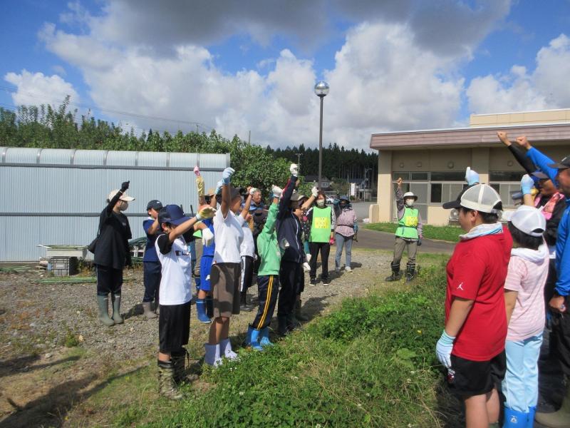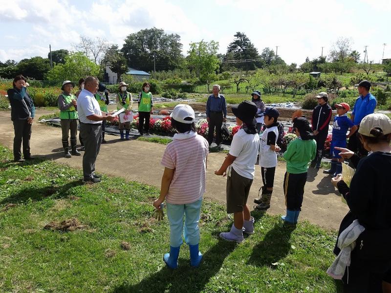 約40分の協働作業の結果、菜園は見違えるようにきれいになりました。終わりの会では、一年間の活動を終えた感想として、「皆さんと一緒に畑作業をして楽しかった」「今年、始めて収穫した枝豆が美味しかった」「また来年も一緒にやりましょう」などが述べられました。最後は、いつも活動をサポートしてくださる地域の方々に対して、感謝の気持ちを込めて手紙を渡したり、握手をしたりしながら交流を深めました。