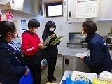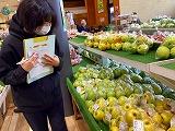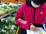 各直売所では、店内を見学後、お店の代表の方に質問をしました。「今一番売れているのは、はくさいやりんごだよ」「旬の野菜は、美味しくて、安いよ」「夏の野菜は体の熱をとるし、冬の野菜は体を温めるんだよ」など大切なお話をたくさんしてくださり、生徒たちは一生懸命メモしていました。