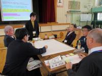 前半は「お互いの学校を知りましょう」というテーマで、最初に授業参観と施設見学をし、本校児童生徒たちの授業を見ていただきました。次に各学校の教頭が各校の特徴のある取組を紹介しました。昨年度の3校合同学校運営協議会を受けて「3校合同つがる地球村清掃活動」、本校・森田小学校・社会福祉協議会森田支所の「地域協働菜園活動」など、今年度実施した新たな交流も紹介されました。また森田小学校と森田中学校の「小中一貫教育」で展開されている教育活動の多さに驚きましたし、その中にも3校で一緒にできる事もあるのではないかと感じました。