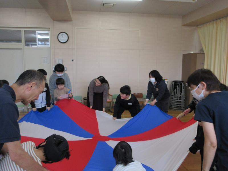 その後、チームに分かれて自己紹介やチーム名決めなどのミーティング、青の煌めきダンス、ボッチャ交流を通して少しずつ距離が縮まり、後半はたくさんの笑顔が見られました。特に、ボッチャの活動場面では、森田中学校の生徒と話し合いながら審判をしたり、「おしい!!」「ナイス!!」などとチームメイトを応援したりと、積極的に関わる様子が印象的でした。