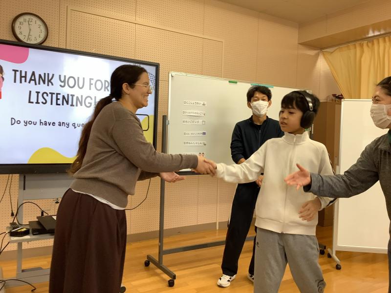 感想発表では「奈良さんの歌がすごく上手だった」「手の動きなど勉強になりました」「また来てください」など述べる子ども達が多く、学びある思い出深い時間となりました。最後には奈良さんと握手をし、お話をしながら温かい雰囲気の中、玄関までお見送りをしました。