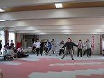 青の煌めきダンスの練習では、「ギューッパ!」や「ひげじいさん!」などのかけ声に合わせて、手や足の動きを確認しました。音楽に合わせて手を広げたり、ジャンプしたりと、笑顔でダンスに取り組む様子が見られました。